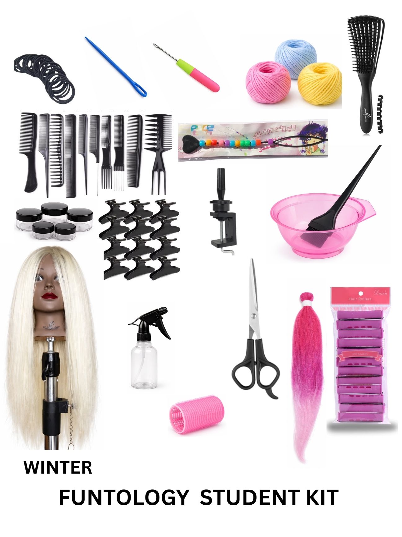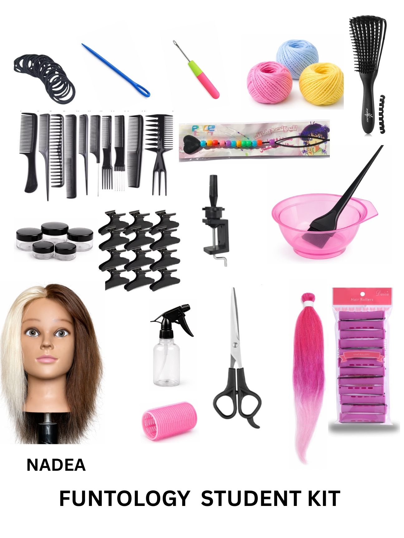 The Supreme Student Kits (each) contain a Practice Mannequin Flat Head, Make up Implements, Shading Supplies, Lipstick & Glossing (Lip) Supplies, Applicator Implements, Color Palettes, Full Facial Coverage Supplies, Lashes, Brow Make up and Additional Products and Supplies for Training.